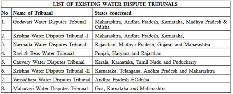 - Inter-State Water Dispute Act, 1956: In case, if a particular state or states approach to Union Government for the constitution of the tribunal: