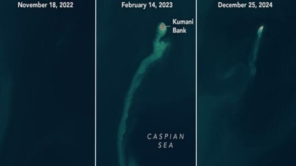 According to NASA’s Earth Observatory, the island was a result of the powerful eruption of the Kumani Bank mud volcano, which lies about 25 kilometers (15 miles) off the eastern coast of Azerbaijan.