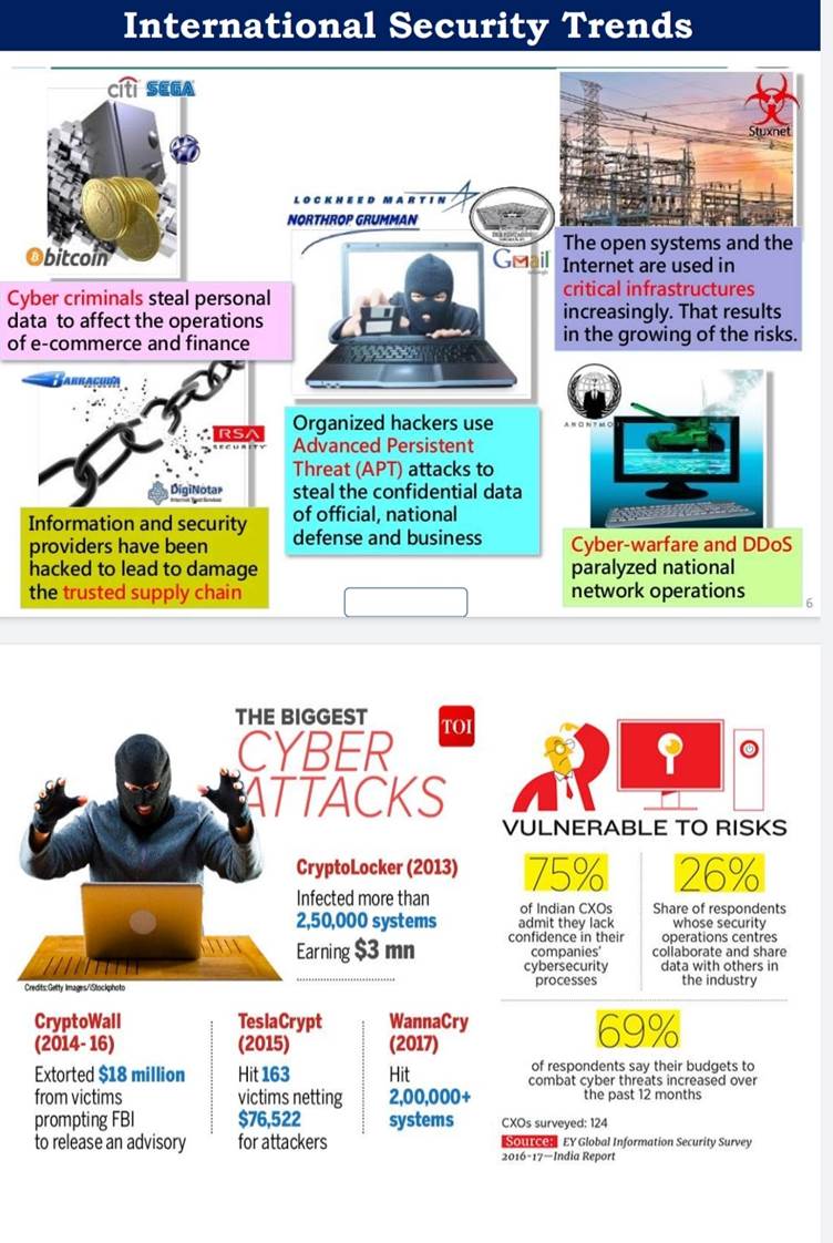 - India the fifth most vulnerable country in the world in terms of cybersecurity breaches.