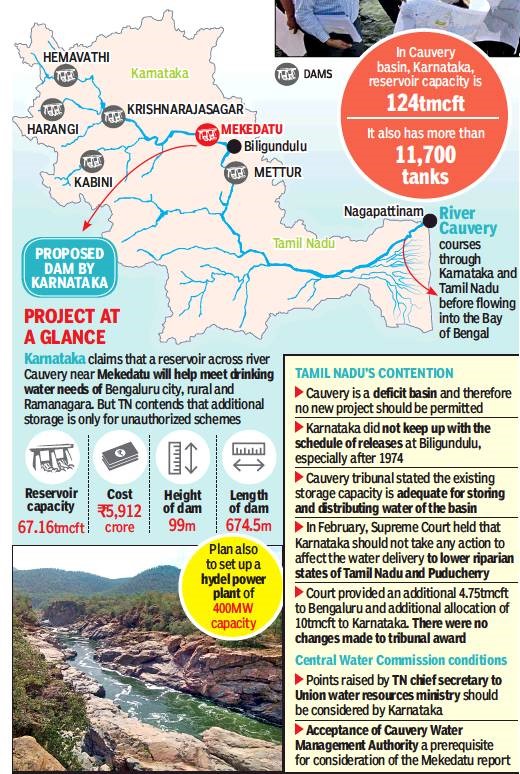 Context: The National Green Tribunal (NGT), has appointed a joint committee to look into allegations of unauthorised construction activity taking place in Mekedatu, where the Karnataka government had proposed to construct a dam across the Cauvery River.