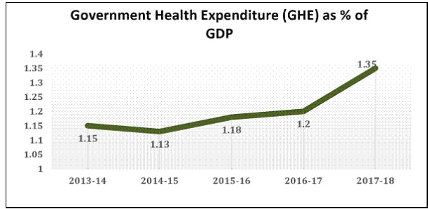 Government expenditure on health has increased from 1.15% in 2013-14 to 1.35% in 2017-18.