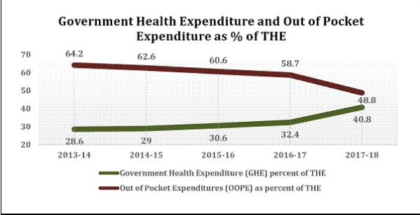 As a share of total health expenditure, OOPE has come down to 48.8% in 2017-18 from 64.2% in 2013-14.