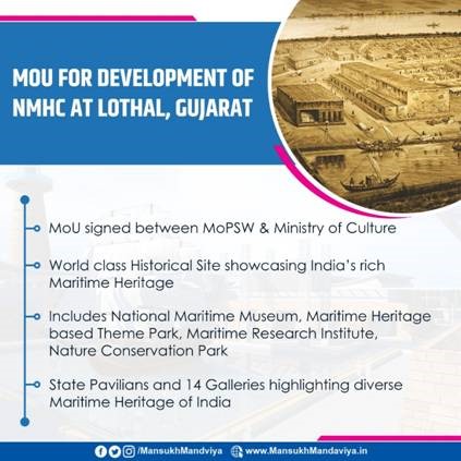 Context: The Ministry of Culture (MoC) and Ministry of Ports, Shipping and Waterways (MoPSW) signed a Memorandum of Understanding (MoU) for ‘Cooperation in Development of National Maritime Heritage Complex (NMHC) at Lothal, Gujarat’.