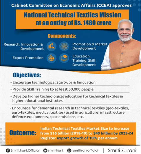 The purpose of the mission is to position India as a world leader in technical textiles.