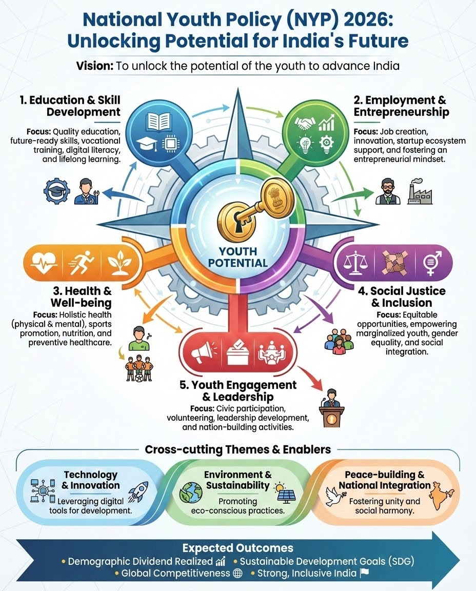 The National Youth Policy 2026 leverages the MY Bharat ecosystem to transform India’s demographic dividend into a catalyst for Viksit Bharat 2047 through data-driven accountability and rigorous implementation.