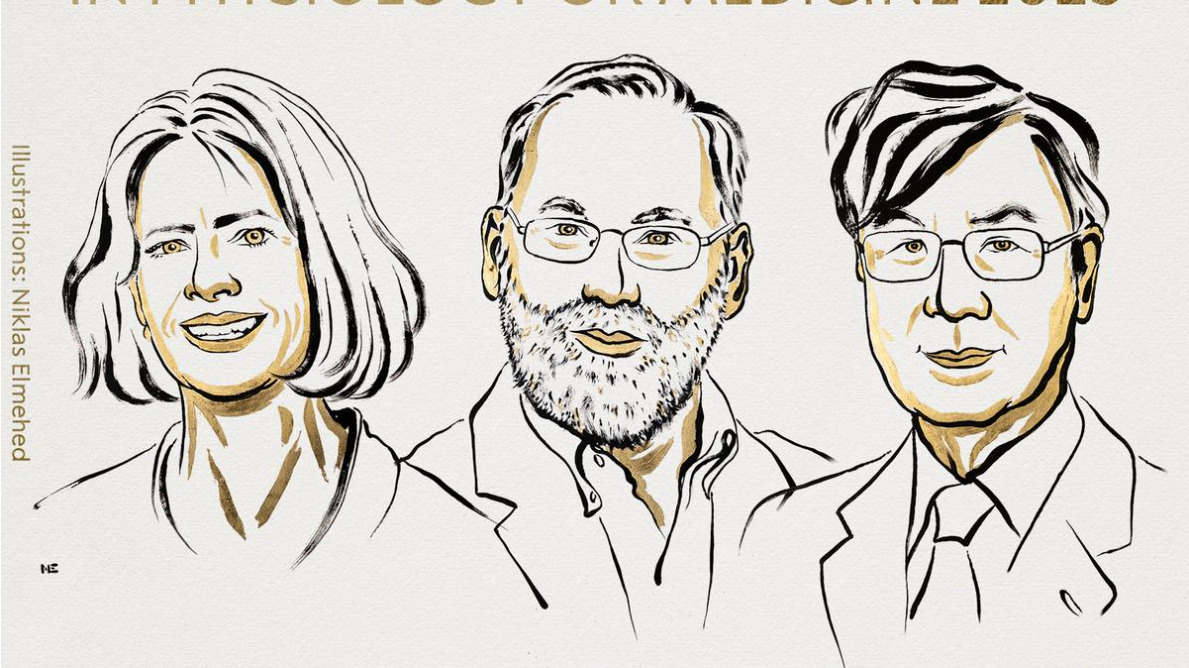 The 2025 Nobel Prize in Physiology or Medicine was awarded to Mary E. Brunkow, Fred Ramsdell, and Shimon Sakaguchi for their pioneering work on peripheral immune tolerance and regulatory T cells.