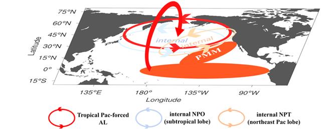 - The North Pacific Oscillation (NPO)—the atmospheric counterpart of the North Pacific Gyre Mode— can trigger PMM events mainly via SST anomalies off the coast of Baja California.