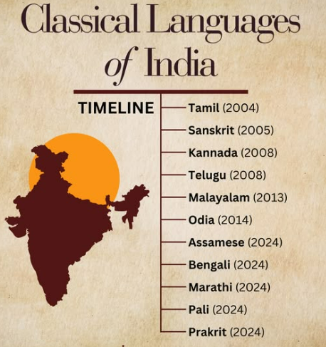 Pali was granted Classical Language status in October 2024 because it met the revised criteria set by the Linguistic Experts Committee. This includes having a high antiquity of early recorded history spanning 1500 to 2000 years and possessing an original, distinct literary tradition that shaped Indian history.