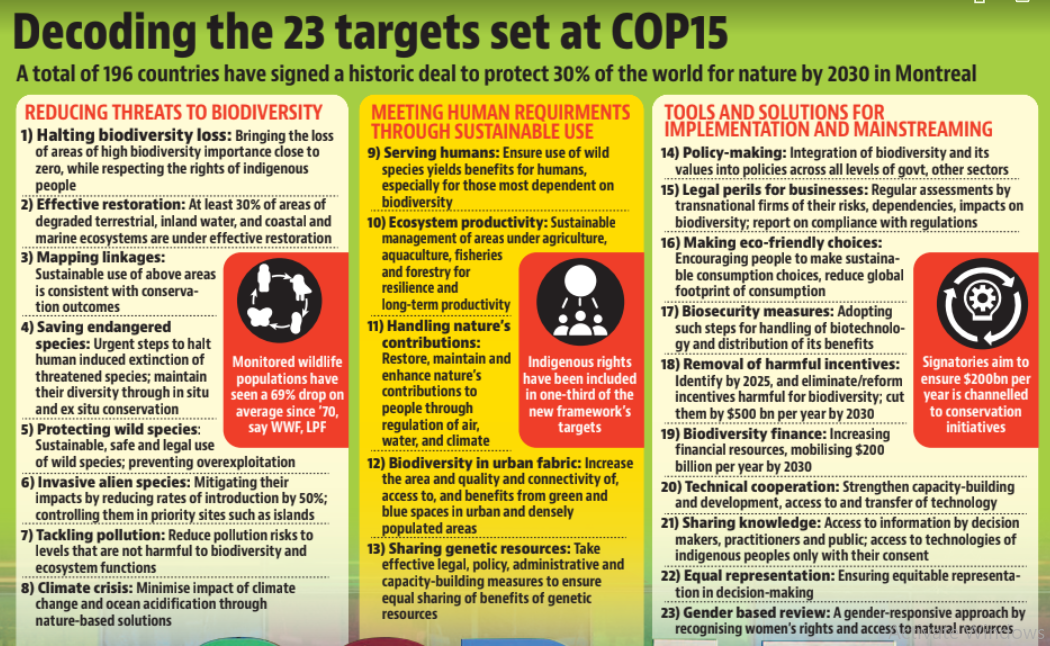 PRACTICE QUESTION Consider the following statements about the Global Biodiversity Framework Fund (GBFF): 1. It is managed by the United Nations Environment Programme (UNEP). 2. It support conservation actions led by Indigenous Peoples and Local Communities (IPLCs). Which of the statements given above is/are correct? A) 1 only B) 2 only C) Both 1 and 2 D) Neither 1 nor 2 Answer: B Explanation: Statement 1 is incorrect: The Global Biodiversity Framework Fund (GBFF) is managed by the Global Environment Facility (GEF). The World Bank serves as the Trustee for the fund. Statement 2 is correct: The GBFF has an aspirational portfolio-level target of allocating 20% of its funding to support actions led by Indigenous Peoples and Local Communities (IPLCs) by 2030. |
