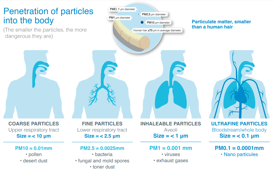 Ultrafine but highly toxic: PM1 (particulate matter <1 micron) is small enough to penetrate alveoli, enter the bloodstream, reach organs, and even cross the blood–brain barrier—a level of infiltration PM2.5 rarely achieves. The Lancet Planetary Health demonstrate that even a small rise in PM1 concentrations is followed by significant increases in hospital emergency visits.