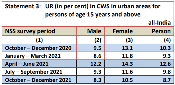 - National Statistical Office (NSO) released the Quarterly Bulletin for the quarter October – December 2021 of Periodic Labour Force Survey (PLFS).