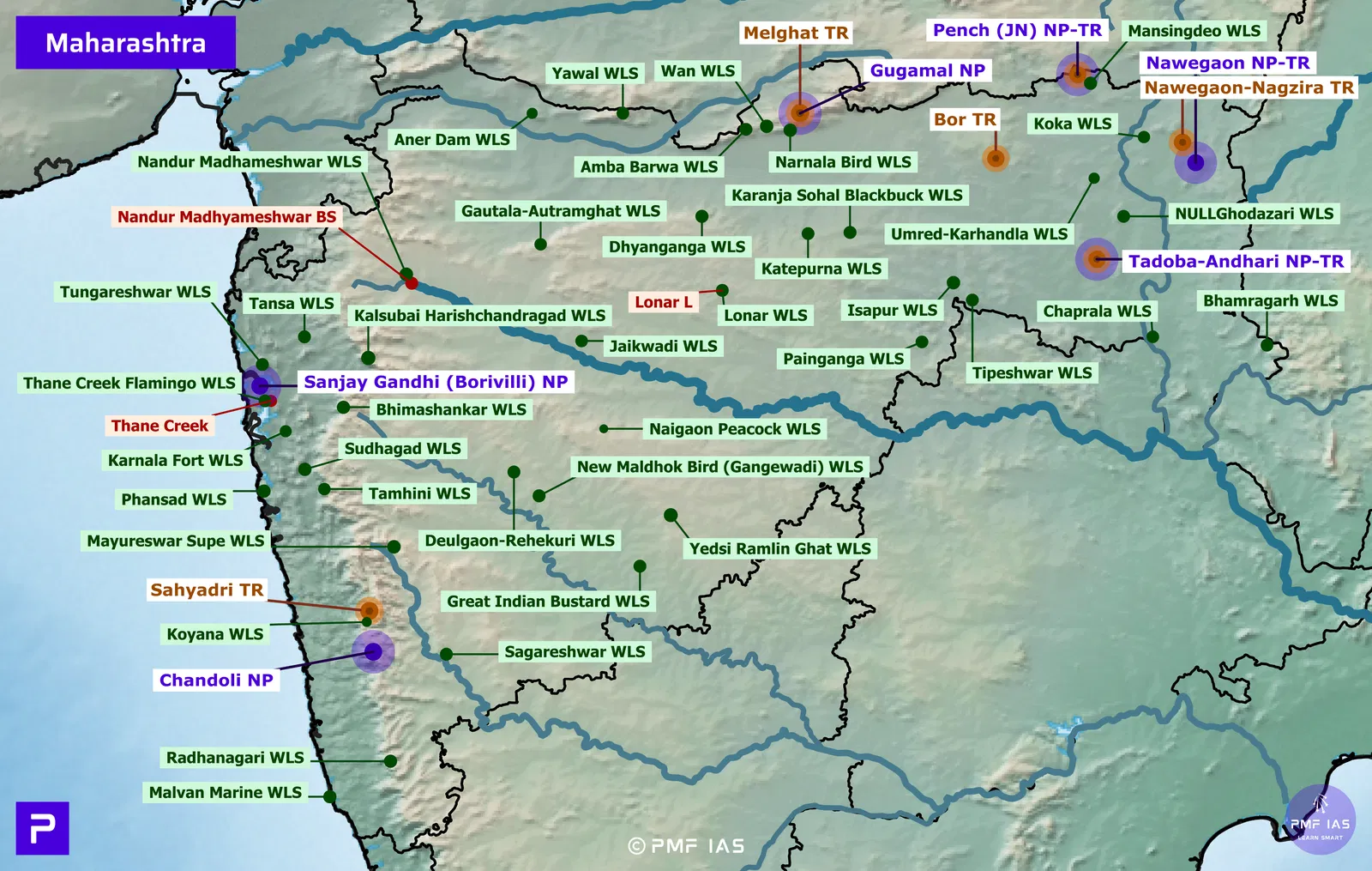 Practice Question Q.Where is the Phansad Wildlife Sanctuary located? A) Goa Answer: B) Maharashtra Explanation: It is part of the Western Ghats and aims to protect the coastal woodland ecosystem. |
