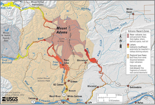 Adams is the source of the headwaters for two major rivers, the Lewis River and White Salmon River. |