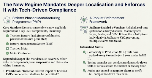 Weak enforcement of localization norms (Phased Manufacturing Programme) risks repeating FAME-II problems, where some companies improperly received subsidies.