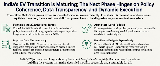 The PM E-DRIVE scheme has shown success in segments like three-wheelers by focusing on public transport, commercial vehicles, and charging infrastructure, but needs to address exclusions and improve financing for a comprehensive national electric mobility transition.