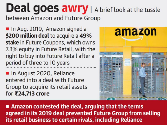 The Competition Commission of India (CCI) froze its approval given in November 2019 to Amazon’s investment in a Future Group unit.