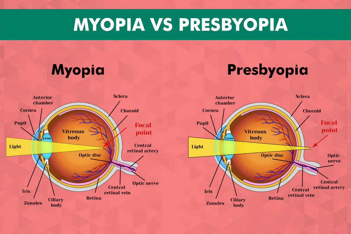Answer: d Explanation: 1st statement is correct: Nearsightedness (myopia) occurs when the eyeball is too long for the refractive power of the cornea and lens. Because of the corneal curvature and relatively long size, light is focused in front of (rather than directly on) the retina, and the person has trouble clearly seeing distant objects. 2nd statement is correct: Farsightedness (hyperopia) occurs in some people when the eyeball is too short for the refractive power of the cornea and lens. Because of the relatively short size, light is focused behind the retina. Children and young adults who are mildly farsighted may be able to see clearly if their lens is flexible enough to properly refocus light on the retina. However, with aging, the lens stiffens. Thus, as farsighted adults age, seeing near objects clearly becomes more difficult and seeing distant objects also becomes more difficult. 3rd statement is correct: There are two types of astigmatism: corneal, in which the shape of the cornea is irregular, and lenticular, in which the lens is imperfectly shaped. Corneal astigmatism is more common. Either type of astigmatism can occur in combination with nearsightedness or farsightedness. |