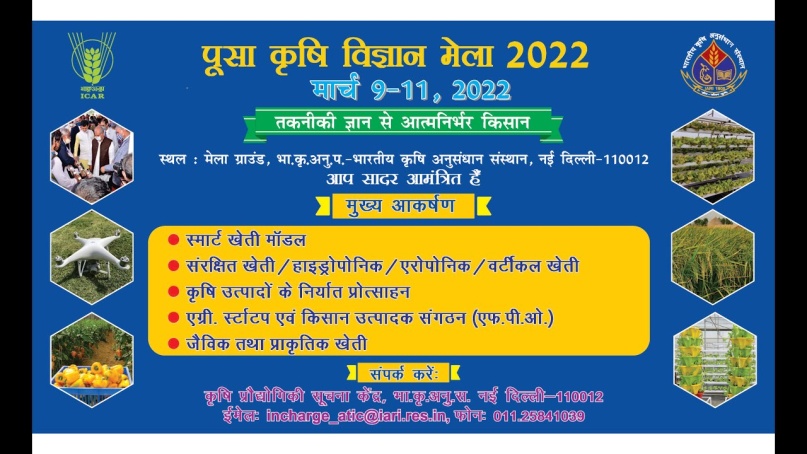 - Pusa Krishi Vigyan Mela 2022 is being organized by the Indian Agricultural Research Institute.