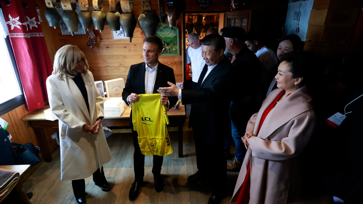 Context: The private meeting between Chinese President Xi Jinping and French President Emmanuel Macron at the Tourmalet Pass in the Pyrenees Mountains.