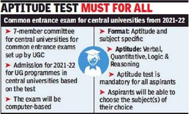 Context: The UGC set up a seven-member committee, headed by Vice-Chancellor of Central University of Punjab R P Tiwari, "to consider the issue (of) holding common entrance test at undergraduate level only from the next academic year”.