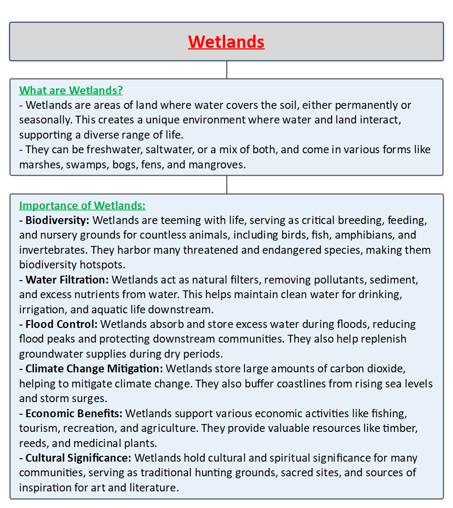 - The announcement was made on the eve of World Wetlands Day, celebrated globally on February 2nd each year. The theme for World Wetlands Day 2024 is 'Wetlands and Human Wellbeing,' emphasizing the critical role wetlands play in enhancing human lives.