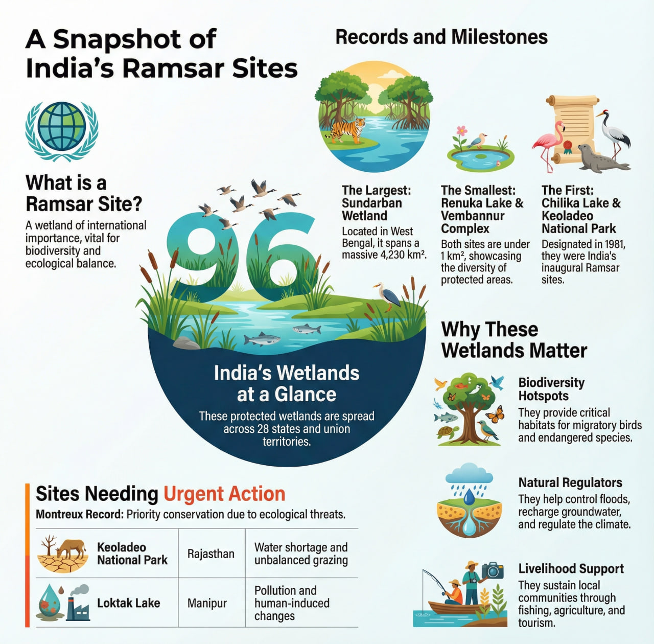 In December 2025, India designated two new wetlands as Ramsar Sites, increasing the total count from 94 to 96. These are: