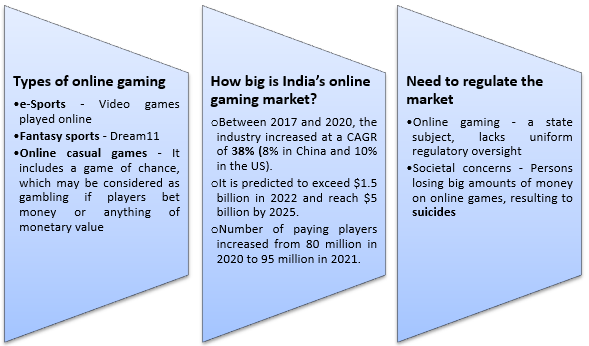 Context: To regulate "online real money games," the Ministry of Electronics and Information Technology announced an amendment to the IT Regulations, in 2021.