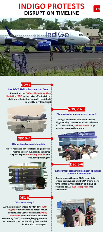 The Directorate General of Civil Aviation (DGCA) has granted IndiGo temporary exemptions for operational stabilisation after mass flight cancellations, triggered by revised Flight Duty Time Limitation norms.