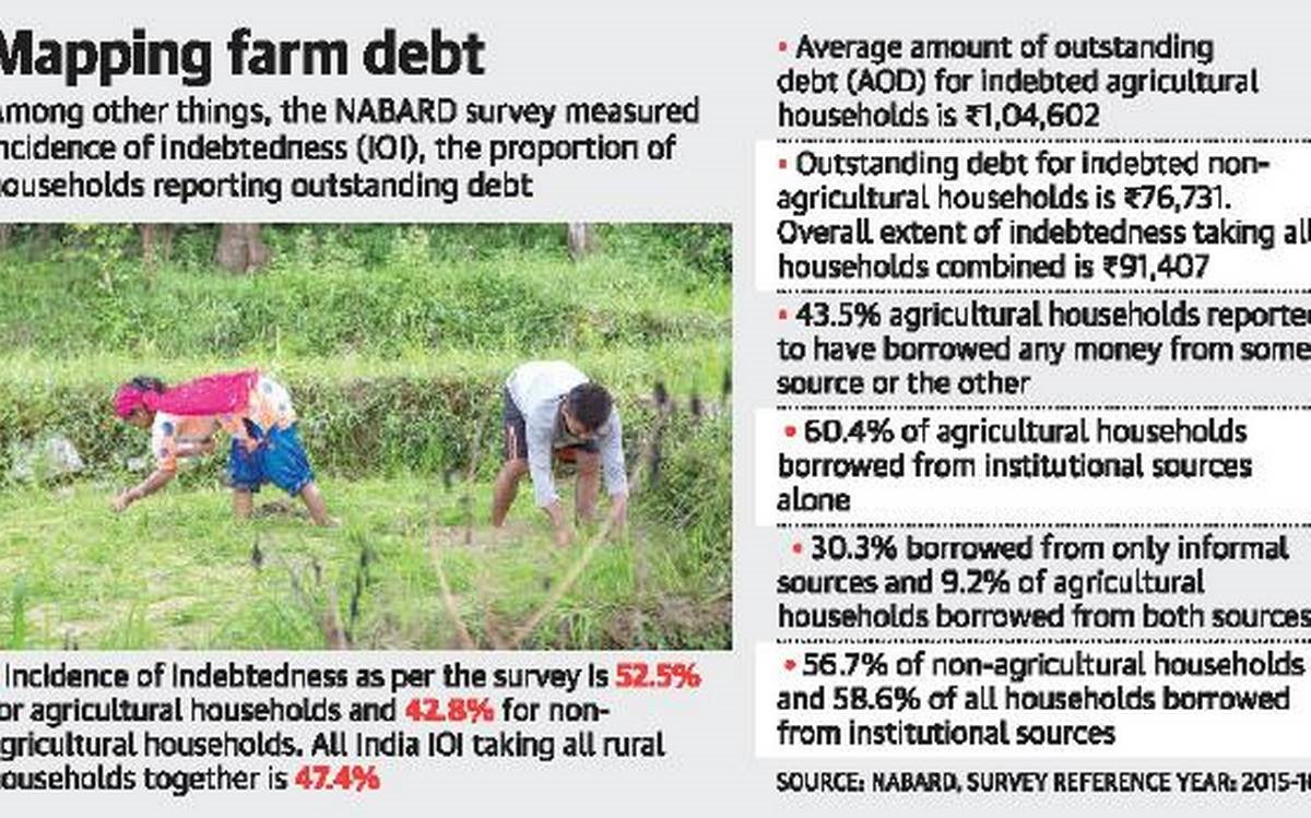 As per the latest AIDIS report, the IOI is 35 per cent in rural India — 17.8 per cent of rural households are indebted to institutional credit agencies, 10.2 per cent to non-institutional agencies and 7 per cent to both.