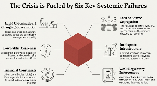 Low Public Awareness: A general lack of public participation and behavioral issues like littering and open dumping exacerbate the problem.