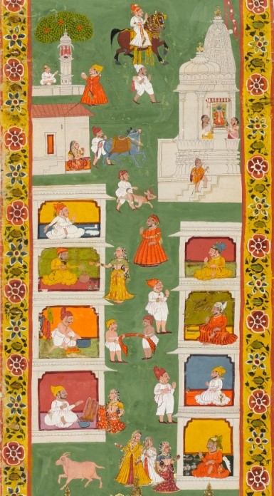 Letter of invitation to Jain monks; picture scroll [vijnaptipatra], c. 1835- Rajasthan