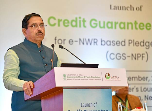 The Union Minister of Consumer Affairs, Food, and Public Distribution, has launched the Credit Guarantee Scheme for e-NWR-based Pledge Financing (CGS-NPF).