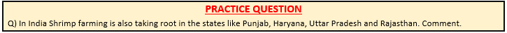 - Shrimp farming is also taking roots in the states like Punjab, Haryana, Uttar Pradesh and Rajasthan.