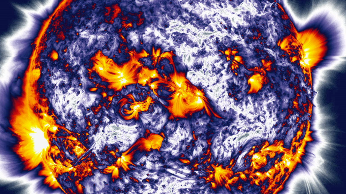 Flares are triggered by the reconnection of twisted magnetic field lines in the Sun’s corona. When these magnetic fields suddenly realign, they release stored magnetic energy in the form of heat, light, and accelerated particles.
