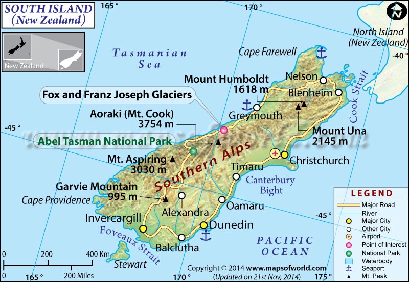 Christchurch, Dunedin, Invercargill, Nelson, Queenstown |