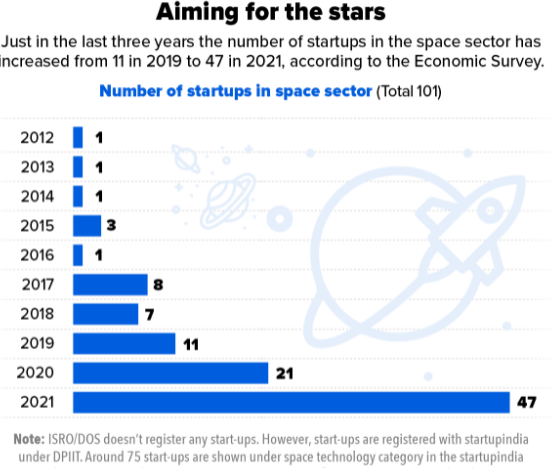 - India has over 61,400 startups recognised by the Department for Promotion of Industry and Internal Trade (DPIIT), with at least 14,000 recognized during fiscal 2022, according to the Economic Survey 2021-22.