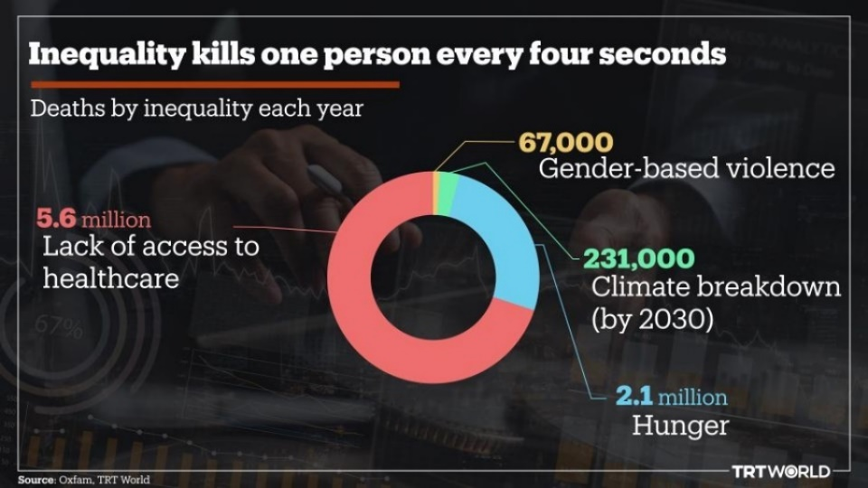 - In 2021, the total wealth of 100 of India's wealthiest people reached a record high of Rs 57.3 Lakh Crore ($ 775 billion). In the same year, the bottom 50% of the population accounted for only 6% of national wealth. Oxfam described inequality as economic violence, adding that lack of access to health care, gender-based violence, hunger and climate change kill 21,000 people each day.