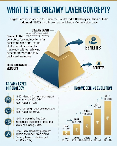 Constitutional Mandate (1992): The concept was constitutionally validated by a nine-judge bench in the Indra Sawhney vs Union of India case (Mandal Commission case).