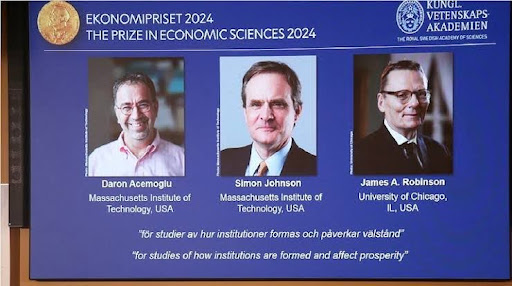 The Royal Swedish Academy of Sciences awarded the Sveriges Riksbank Prize in Economic Sciences in Memory of Alfred Nobel 2024 to Daron Acemoglu, Simon Johnson, and James A. Robinson“for studies of how institutions are formed and affect prosperity”