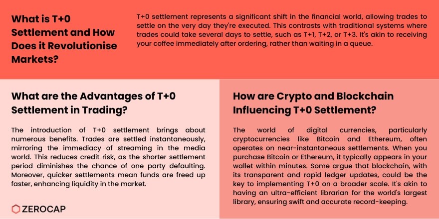 - SEBI presents a forward-thinking initiative to introduce optional T+0 and instant settlement, aligning with global best Q.practices. While offering benefits like enhanced market efficiency, liquidity, and safety, it requires addressing operational, technological, and regulatory challenges. A comprehensive approach involving gradual implementation, monitoring, and periodic reviews is essential for success and to realize the potential benefits for the Indian securities market.