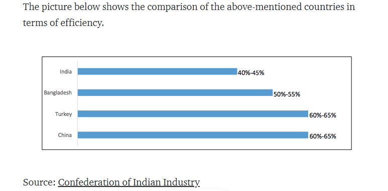 - With the increasing global competition, one of the main factors affecting the growth of garment industry in India is the lower productivity level. India’s apparel factory productivity levels are relatively low compared to countries like Turkey, China and Bangladesh.