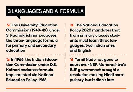 States like Tamil Nadu have consistently opposed the formula, viewing it as an imposition of Hindi. Tamil Nadu adheres to a two-language policy (Tamil and English).