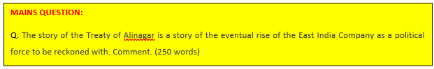 Context: The Treaty of Alinagar, signed on February 9, 1757, was a reluctant agreement signed by Bengal’s Nawab Siraj ud Daula with the English East India Company. An outcome of decades of tension that bubbled over into armed conflict between the two parties, the Treaty strengthened the position of the British in Bengal and laid foundations for the Battle of Plassey a few months later.