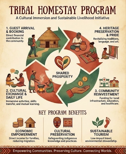 Promoting tribal homestays enables an empowerment-driven model that combines livelihood generation, cultural preservation, and sustainable tourism to support inclusive and self-reliant tribal development.