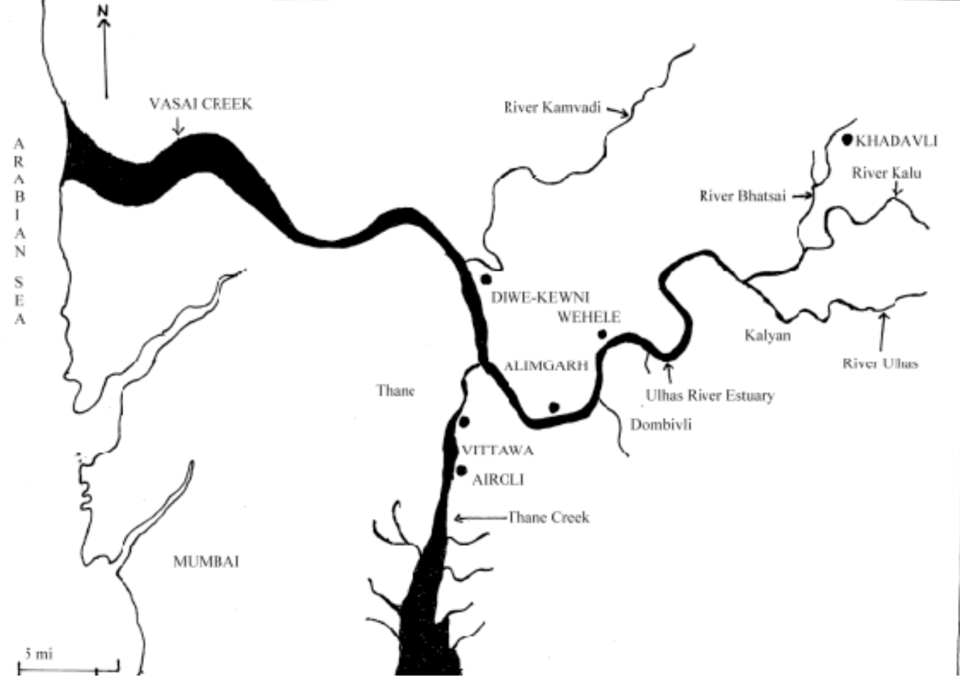 The estuary of Ulhas River houses several historical ports. |