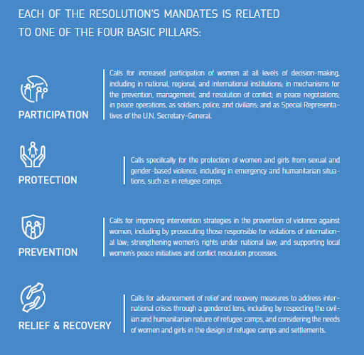It is a global framework rooted in the UN Security Council Resolution 1325 (UNSCR 1325), which was unanimously adopted in 2000, to recognise the disproportionate impact of armed conflict on women and girls.