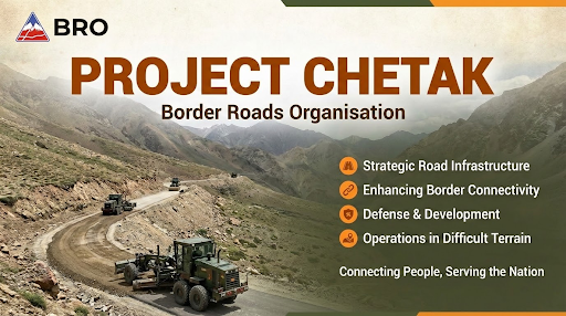 Project Chetak is a dedicated wing of the Border Roads Organisation (BRO) established in 1980. It is responsible for executing strategic infrastructure projects across India's western border states, including Rajasthan, Punjab, and Northern Gujarat.