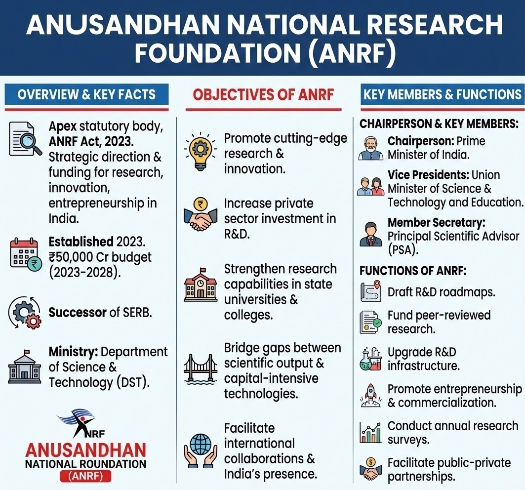 The platform functions under the guidance of the Anusandhan National Research Foundation (ANRF), which is the apex body for R&D funding established under the ANRF Act, 2023.