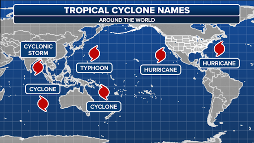 Tropical cyclones are intense, rotating storm systems with a low-pressure center, strong winds, and a spiral arrangement of thunderstorms that produce heavy rain. They are known by different names in different parts of the world: