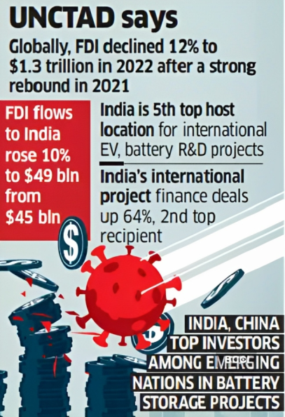 Context: According to the World Investment Report 2023 released by the United Nations Conference on Trade and Development (UNCTAD), foreign direct investment (FDI) in developing countries in Asia remained at $662 billion in 2022, accounting for about half of the global inflows.